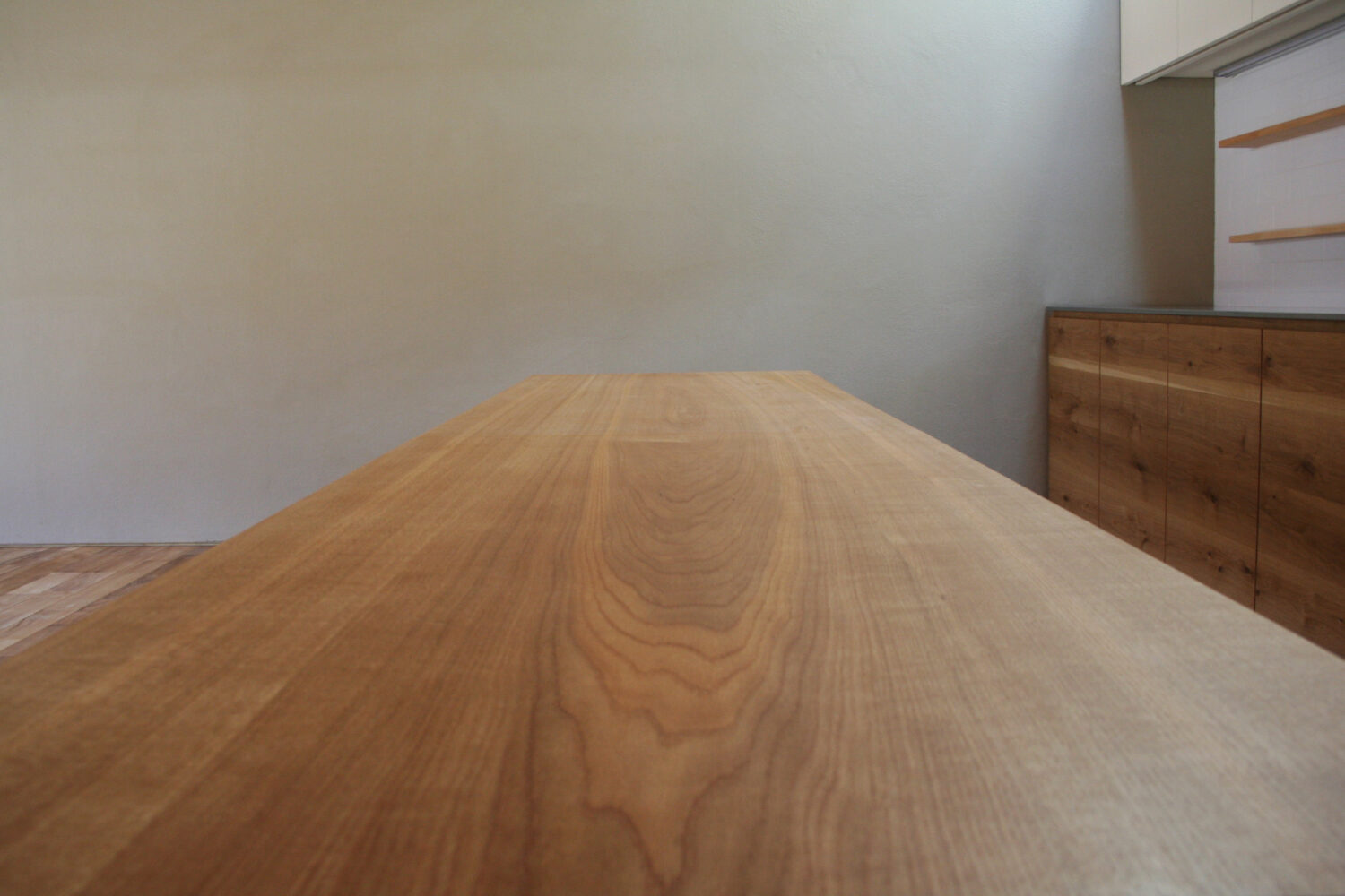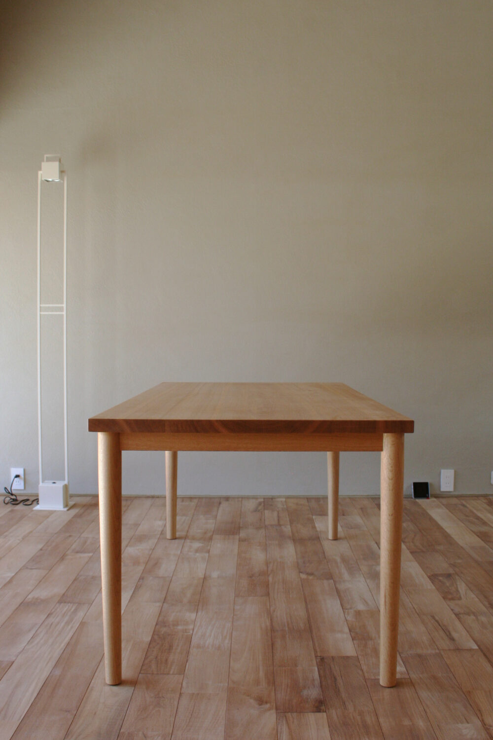 ダイニングテーブルの天板は一枚ものに見えるよう無垢のはぎ合わせを考え、製作しております。