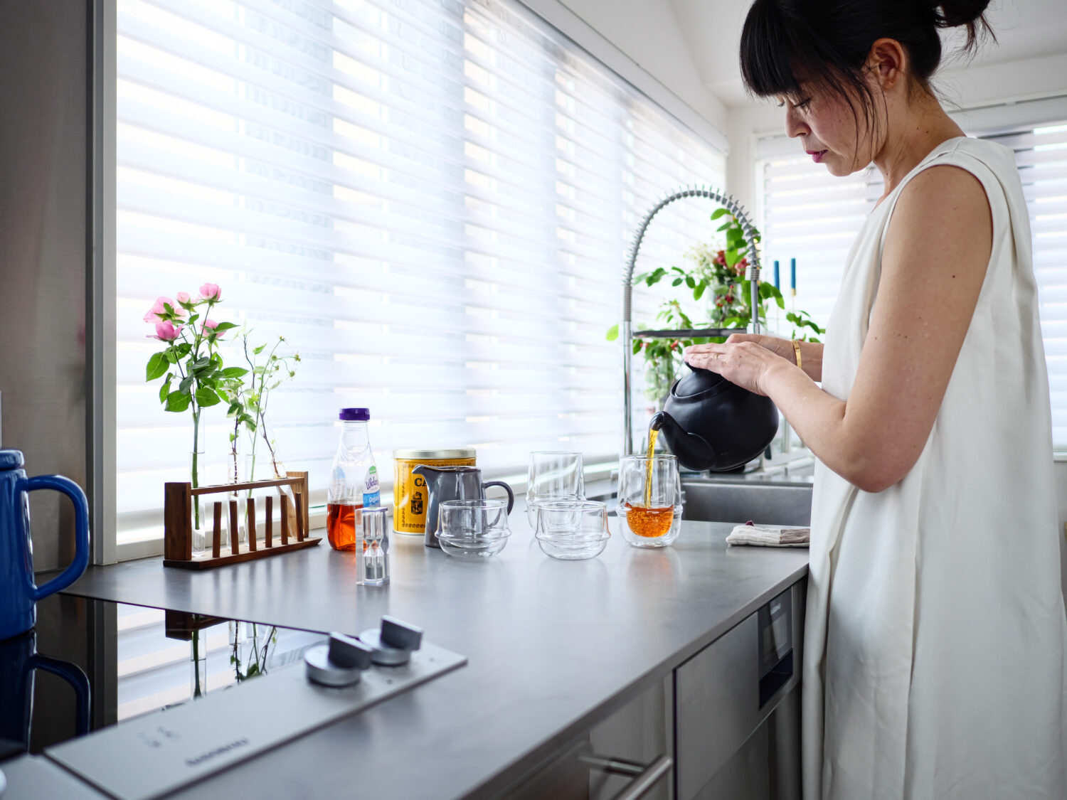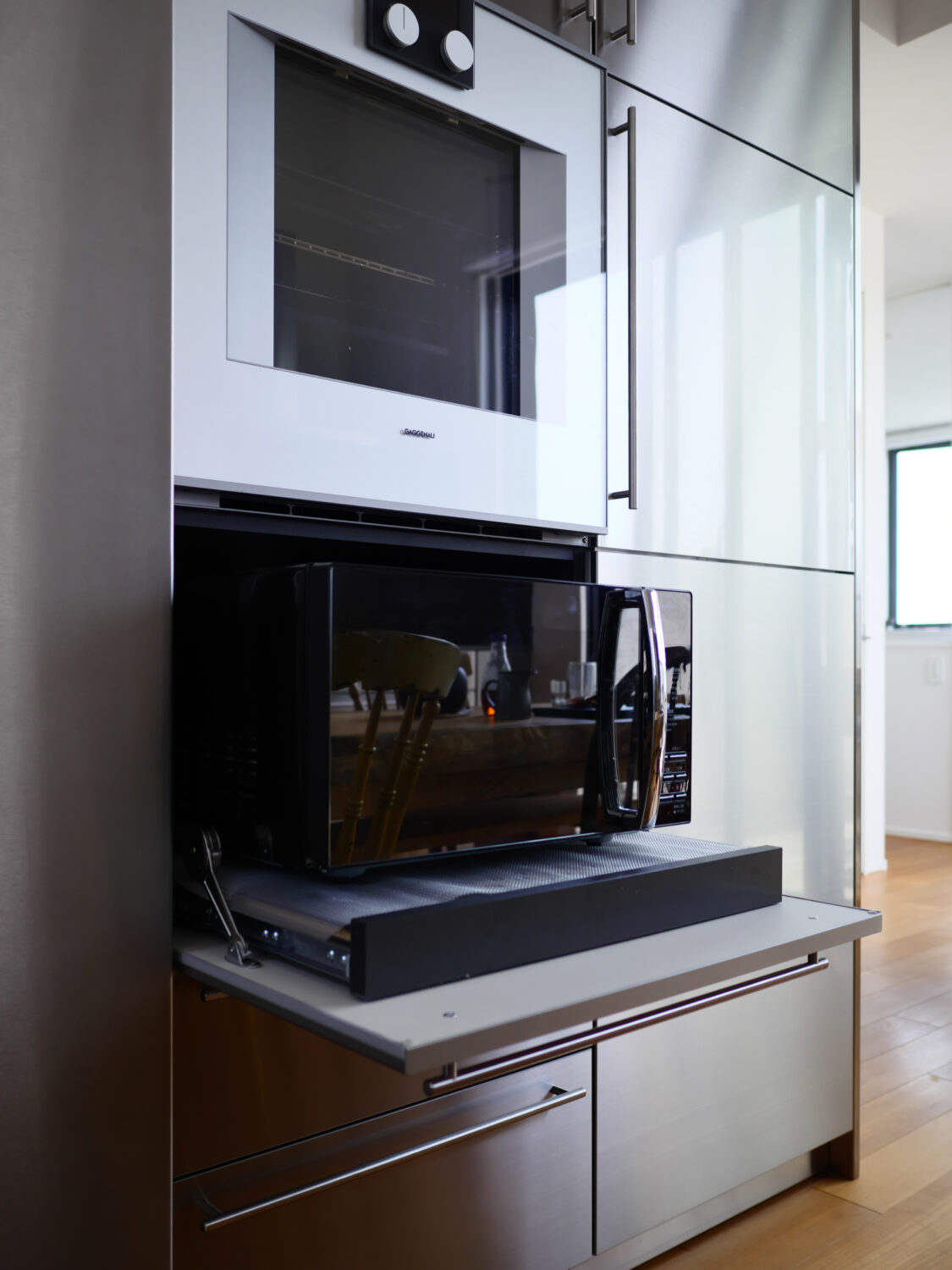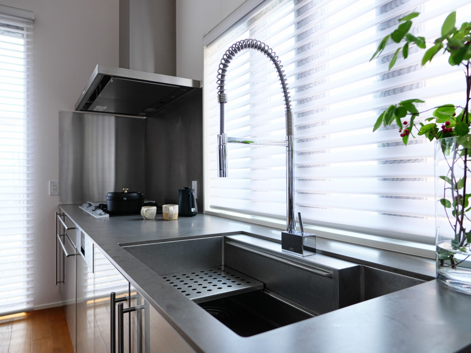 シンプルに見える中に、素材や機器、お客様の使い方が調和したキッチン空間になりました。