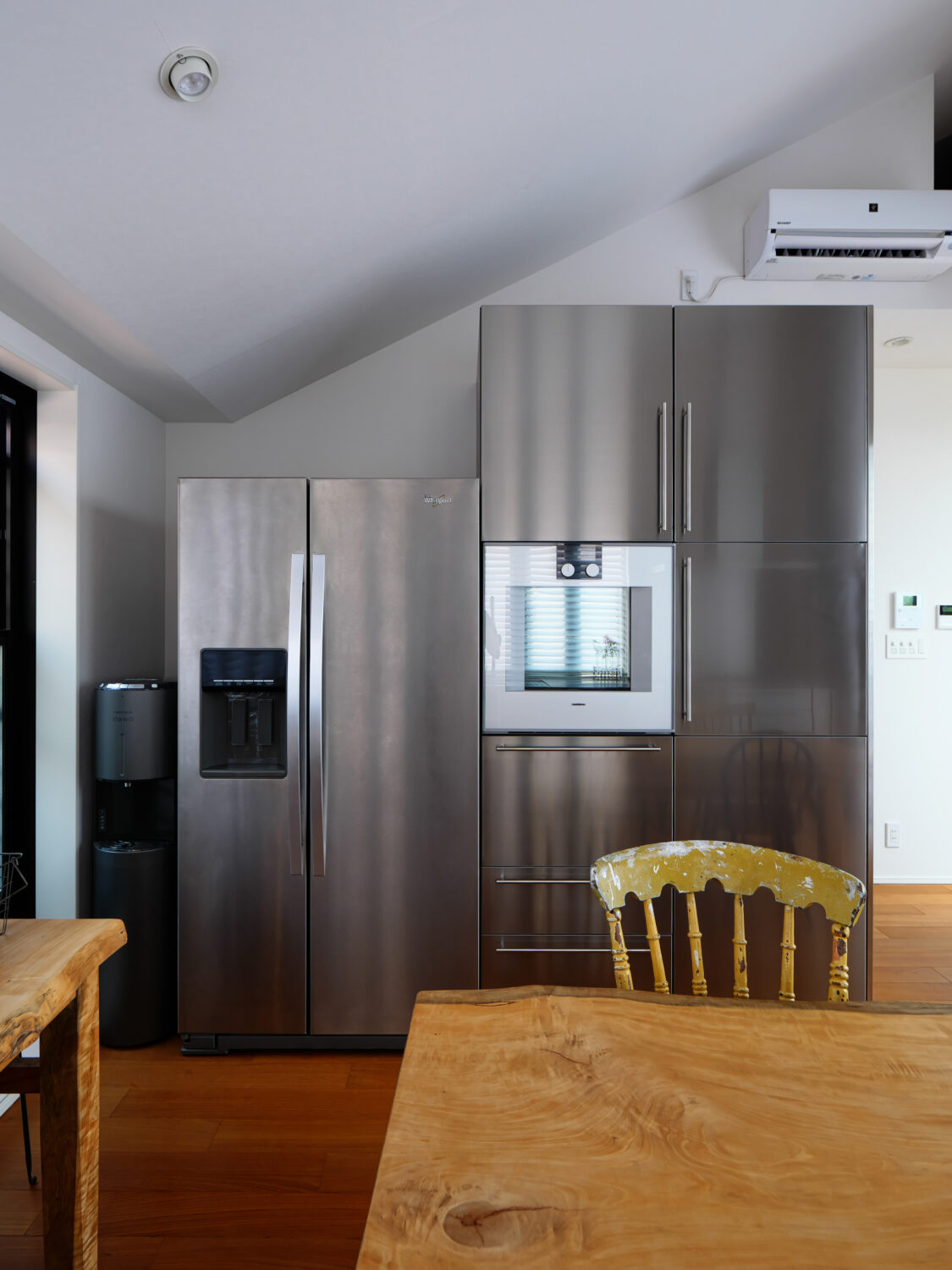 GAGGENAUのオーブンや、隣に設置したWhirlpoolの冷蔵庫はデザインもよく、ハイスペック機能です。