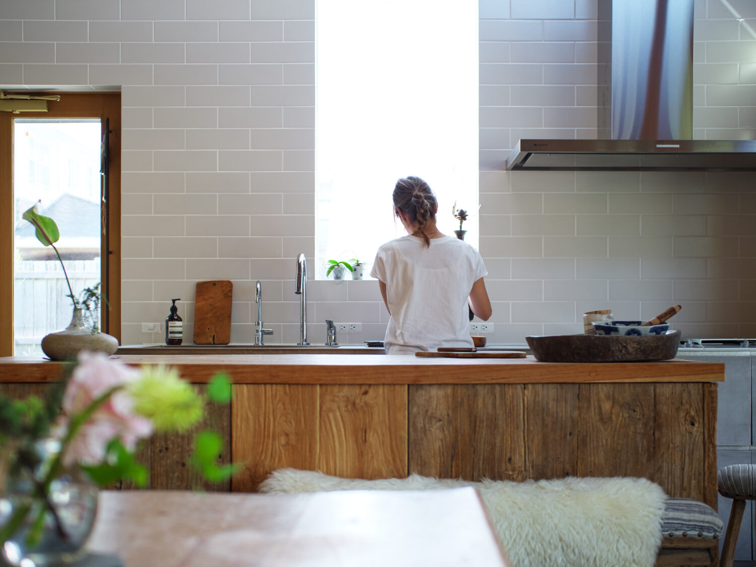 シンプルで美しいレンジフードを幅1200の特注で機能性もよく、キッチン全体をスタイリッシュに仕上げる事ができました。