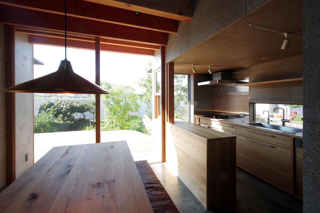 お話をすすめていくなかで、お施主様自身が建具や家具、床、デッキ等、木の素材のいいところや、 そうでないところをご理解され、オイルを塗ることも抵抗がなく、メンテナンスをしながら 大切に使われることでしたので、製作をいたしました。