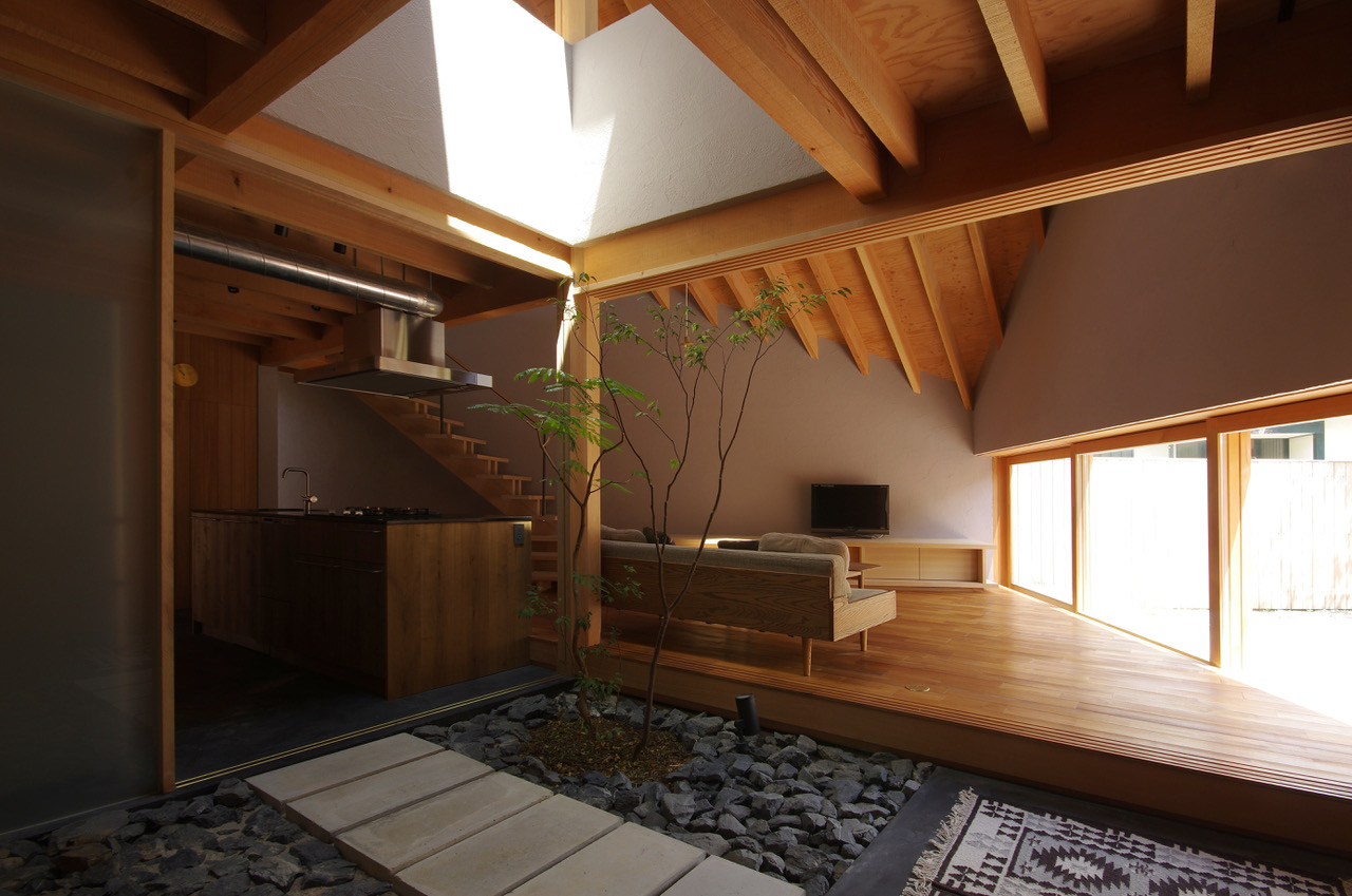 神戸市の六甲山を越えた自然に囲まれた住宅地に建つ、若いご夫婦の新築住宅です。