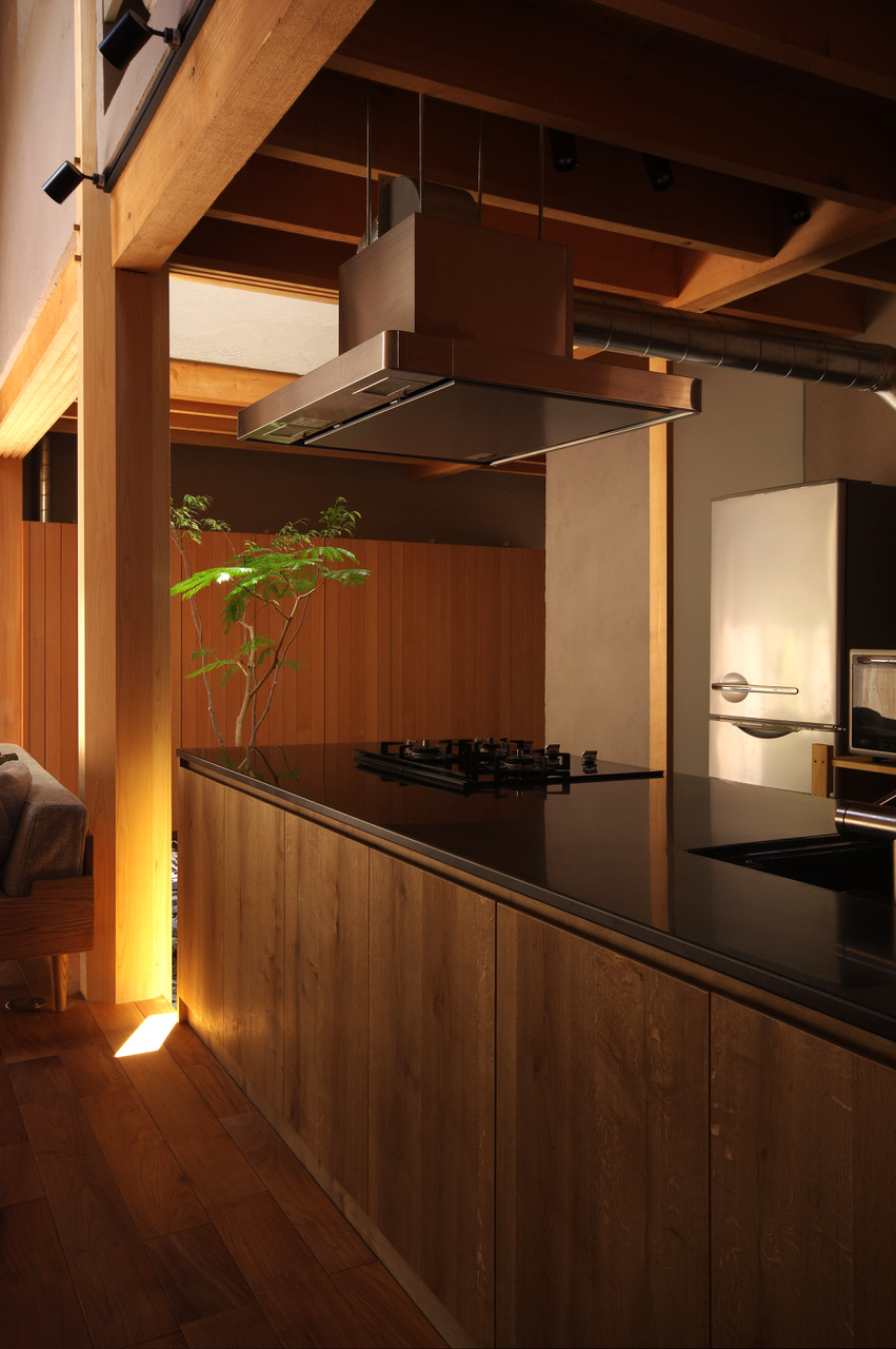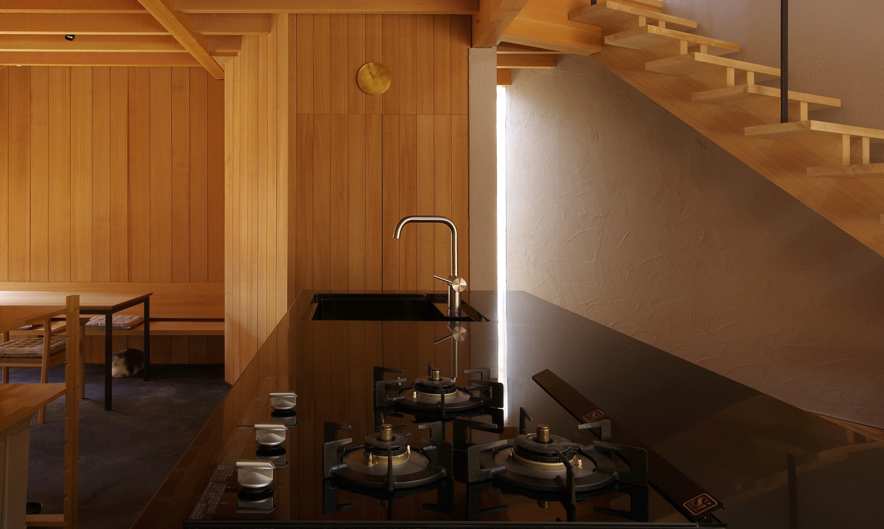 黒を極めたキッチンは建築にも馴染みながらも存在感のあるキッチンに仕上がりました。