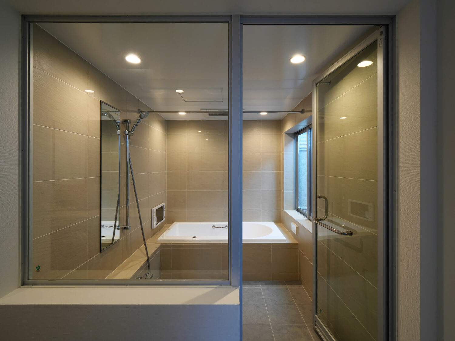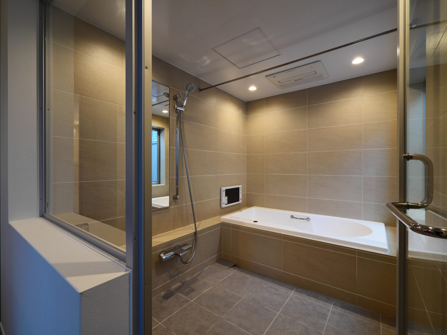 床はグレーのサーモタイルで、冬場のヒンヤリ感を軽減します。