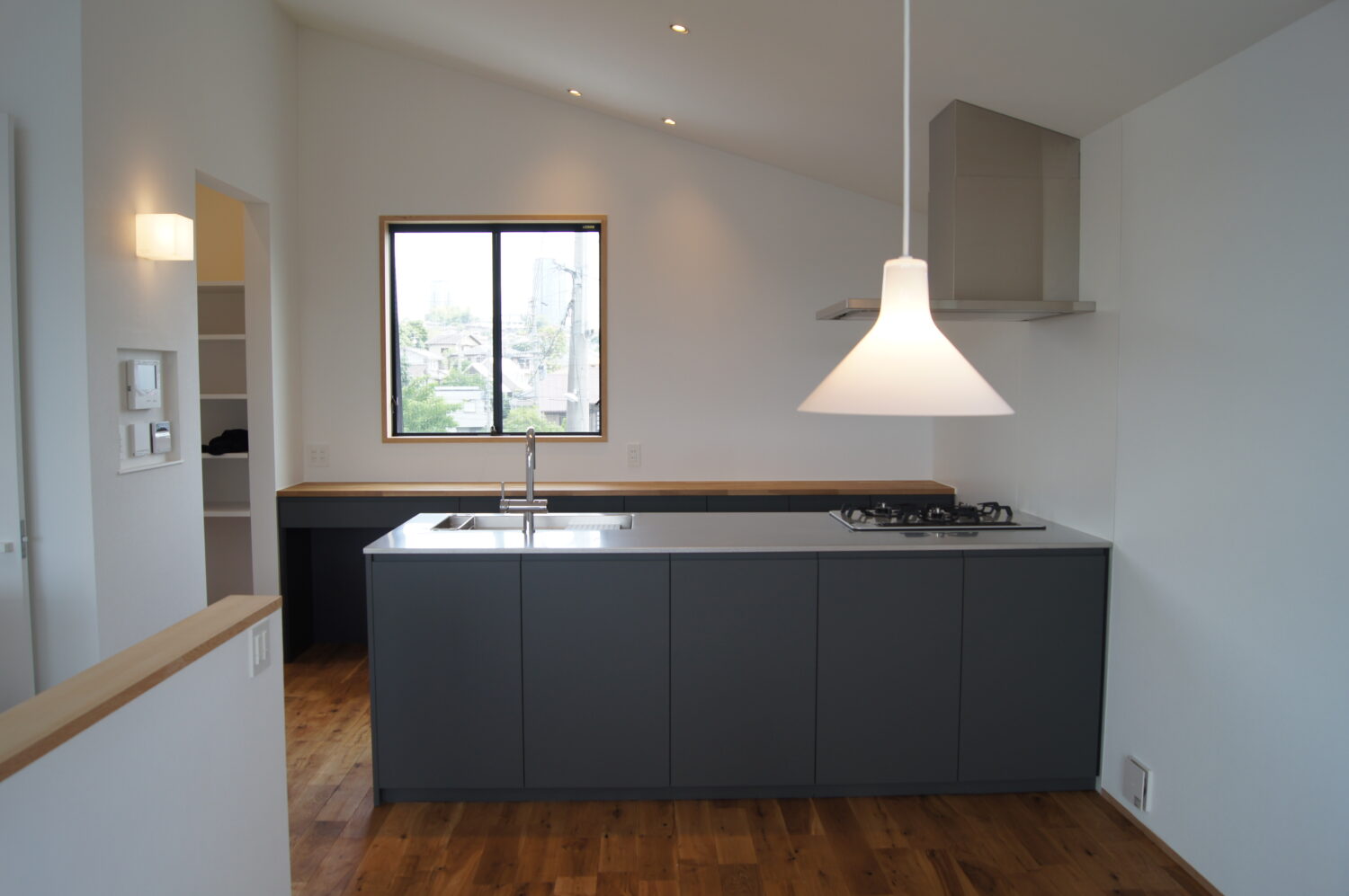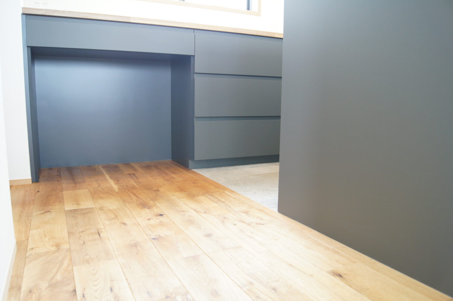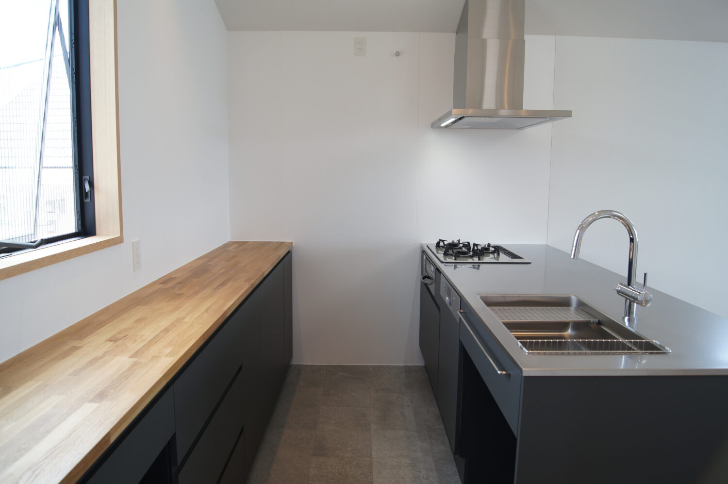 キッチン、カップボード共に扉は落ち着いたダークグレーをセレクトされました。