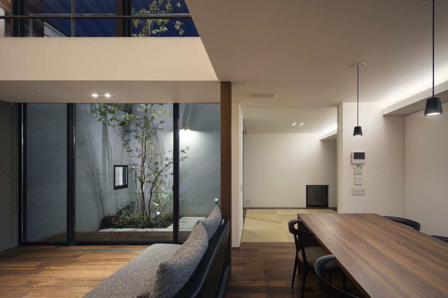 アイランド側とダイニングテーブルが一体となったキッチン。