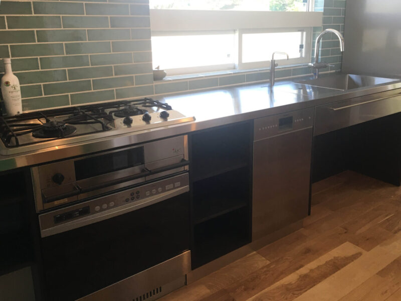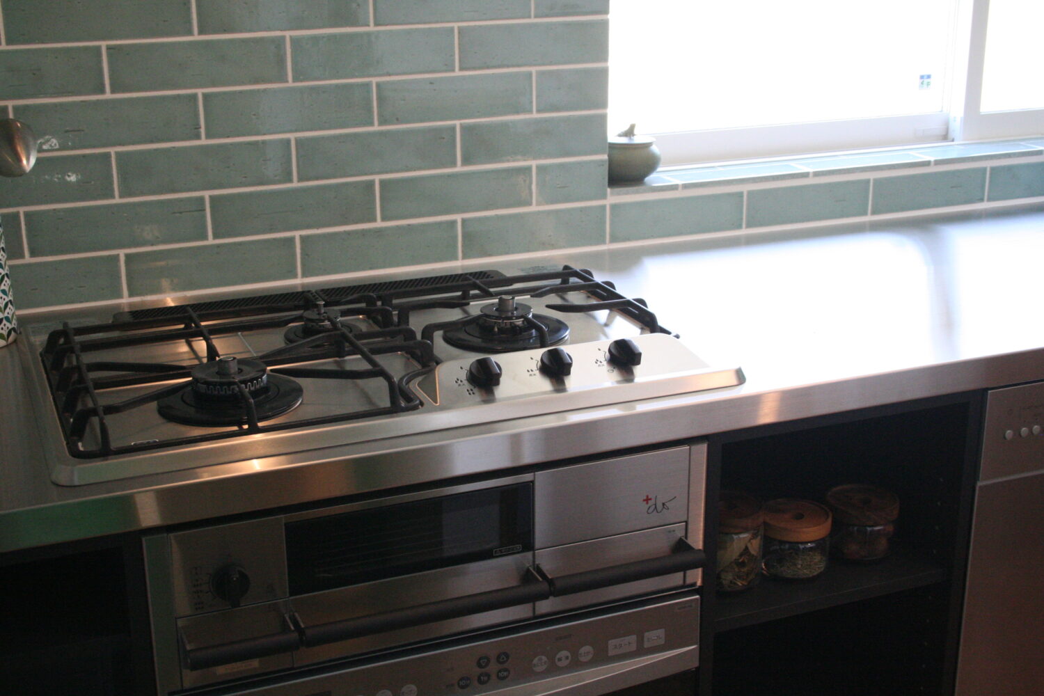 機器はプロ仕様の高火力ガスコンロ、+doとビルトインガスオーブン、食洗機はGAGGENAUを採用しました。