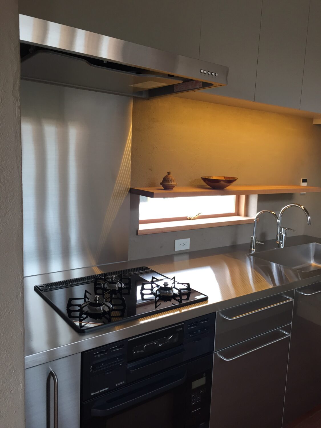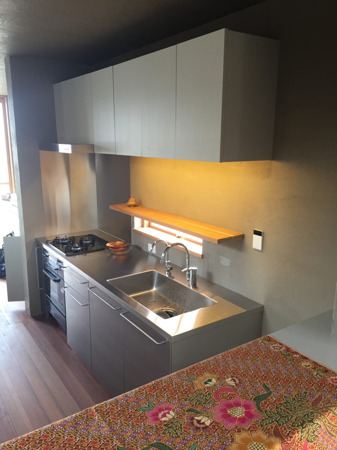 極力シンプルな形とし、設備もご要望から必要最低限のものをセレクトして、 シンプルながらもステンレスならではの存在感、気品、それでいてザックリ感など様々な表情をみせます。